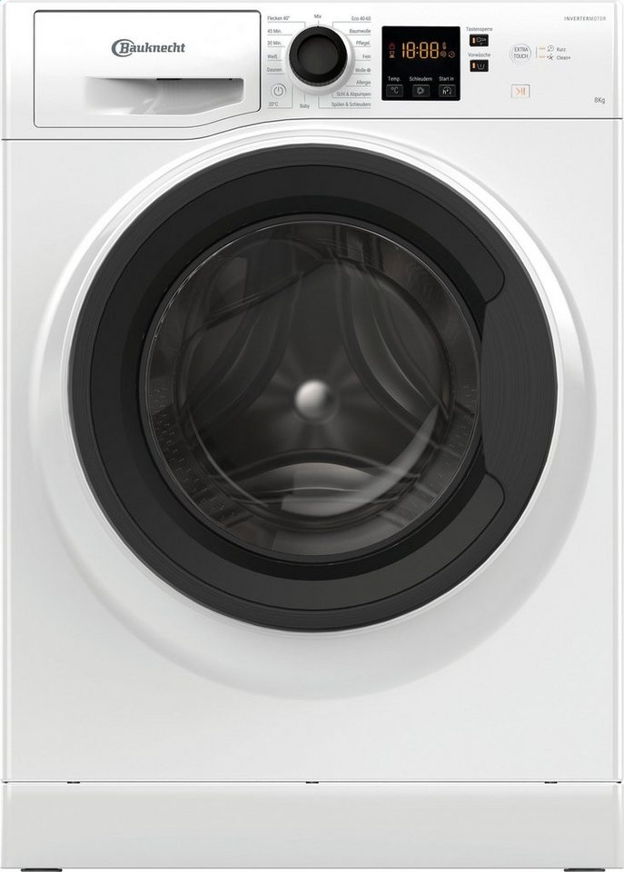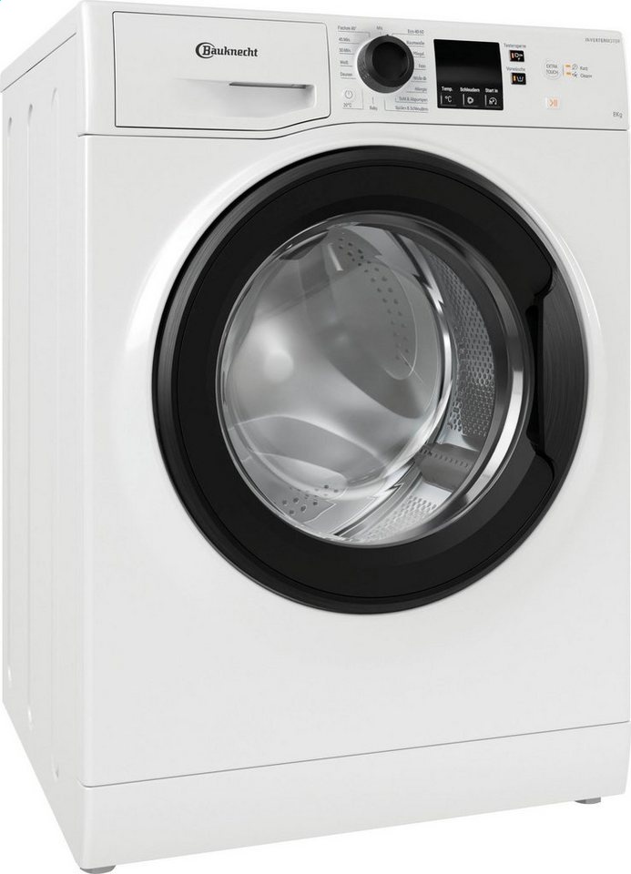 Mit der Super Eco 845 A präsentiert BAUKNECHT eine performante Waschmaschine. Die Energieeffizienzklasse A (Skala: A bis G) zeichnet diese Waschmaschine als besonders energiesparendes Modell aus. Der Frontlader eignet sich vor allem für Haushalte mit bis zu 4 Personen, da dieser 8 kg Fassungsvermögen hat. Ausgestattet mit einem Invertermotor läuft die Super Eco 845 A Waschmaschine vollkommen verschleißfrei und mit einer minimalen Lautstärke. Außerdem hält die Super Eco 845 A Waschmaschine folgende Besonderheiten bereit: Clean+ und Schaumsensor. Ist einmal zu viel Waschmittel in der Trommel, reagiert die Schaumerkennung und legt einen extra Spülgang ein. So bleiben keine Rückstände in Ihren Textilien. Anhand der Startzeitvorwahl lässt sich individuell einstellen, wann die Super Eco 845 A Waschmaschine mit dem Waschgang starten soll. Durch eine übersichtliche Restlaufanzeige der Waschmaschine hat der Benutzer stets im Auge, wie lange der aktuelle Waschgang noch benötigt. Mit dem eingebauten Wasserschutzsystem "Mehrfachwasserschutz+" schützt die Super Eco 845 A Waschmaschine Haushalte vor teuren Wasserschäden. Für die Sicherheit der kleinsten Familienmitglieder ist an der Super Eco 845 A Waschmaschine eine Kindersicherung vorhanden. Die Abmessungen der Waschmaschine betragen 59,5 cm x 85 cm x 60,5 cm (BxHxT).