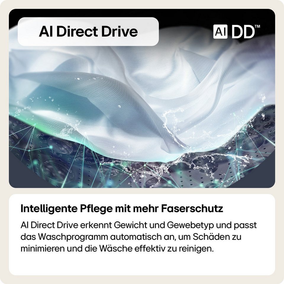 - AI Wash: erkennt automatisch Wäschegewicht und -art, passt Waschprogramm an und sorgt so für effiziente und schonende Reinigung
