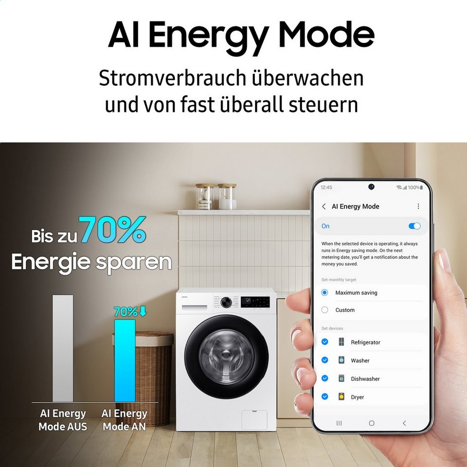 - AI Energy Mode - Kann den Energieverbrauch deiner Waschmaschine um bis zu 70% reduzieren