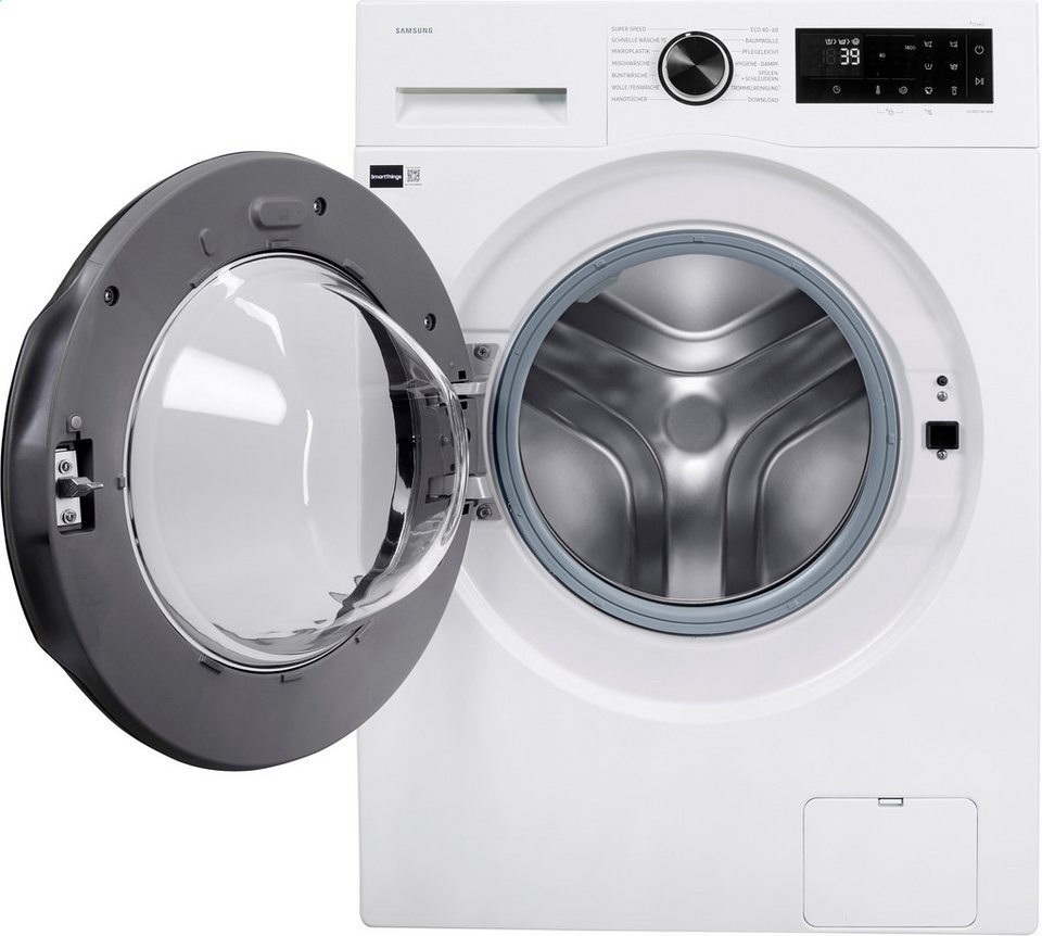 Mit der WW1EFG5U34AEEG präsentiert Samsung eine performante Waschmaschine. Ausgezeichnet mit der Energieeffizienzklasse A (Skala: A bis G) fällt der Energieverbrauch dieser Waschmaschine äußerst niedrig aus. Der Frontlader eignet sich vor allem für Haushalte ab 5 Personen, da dieser 10 kg Fassungsvermögen hat. Der verbaute Invertermotor arbeitet nicht nur leise, sondern auch ganz und gar verschleißfrei. Folgende Besonderheit zeichnet die WW1EFG5U34AEEG Waschmaschine aus: Super Speed. Anhand der Startzeitvorwahl lässt sich individuell einstellen, wann die WW1EFG5U34AEEG Waschmaschine mit dem Waschgang beginnen soll. Durch eine übersichtliche Restlaufanzeige der Waschmaschine hat der Benutzer stets im Blick, wie lange der aktuelle Waschgang noch benötigt. Dank des verbauten Wasserschutzsystems "Vollwasserschutz" beugt die WW1EFG5U34AEEG Waschmaschine Wasserschäden vor. Die Abmessungen der Waschmaschine betragen 60 cm x 85 cm x 55 cm (BxHxT).